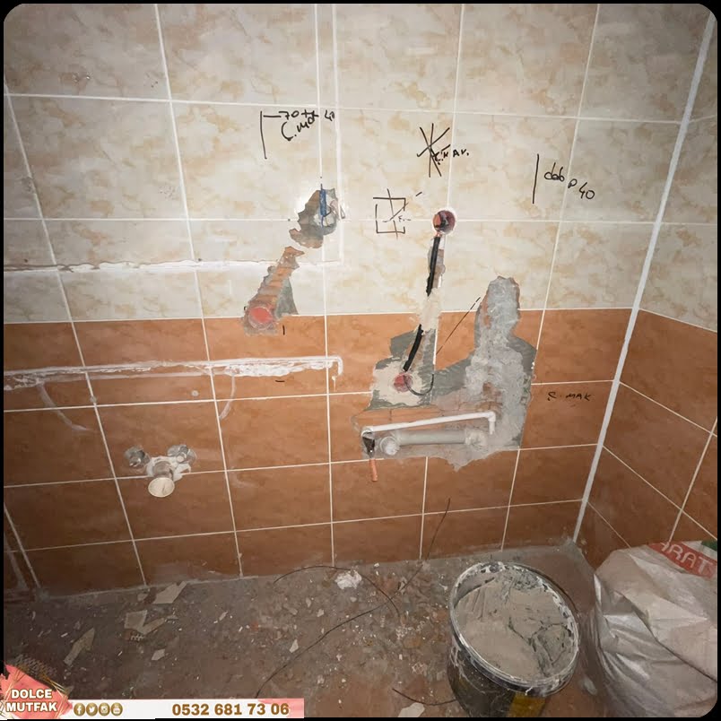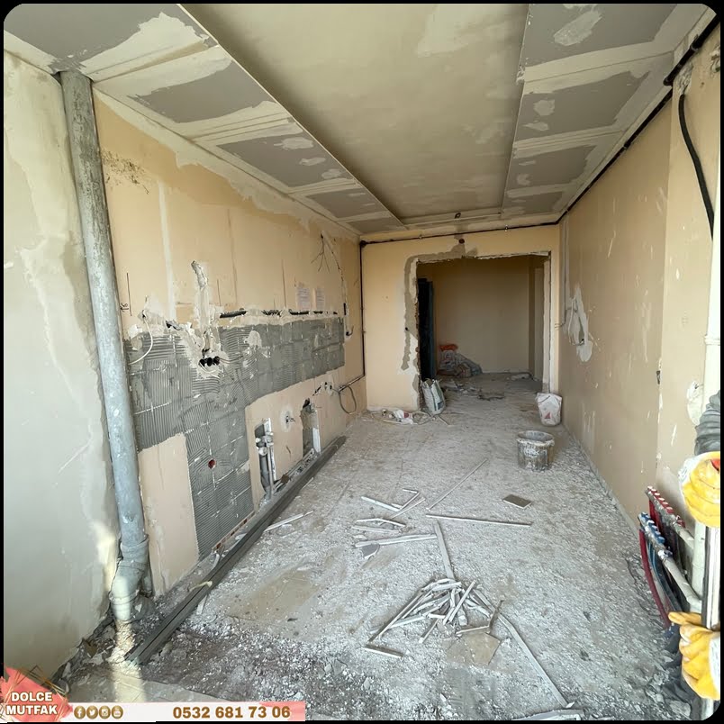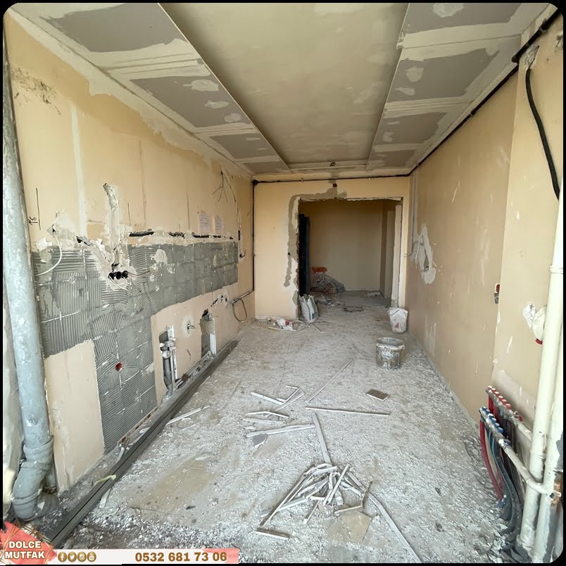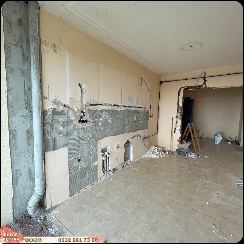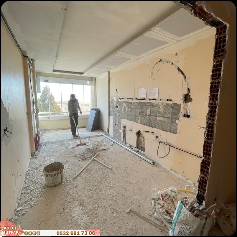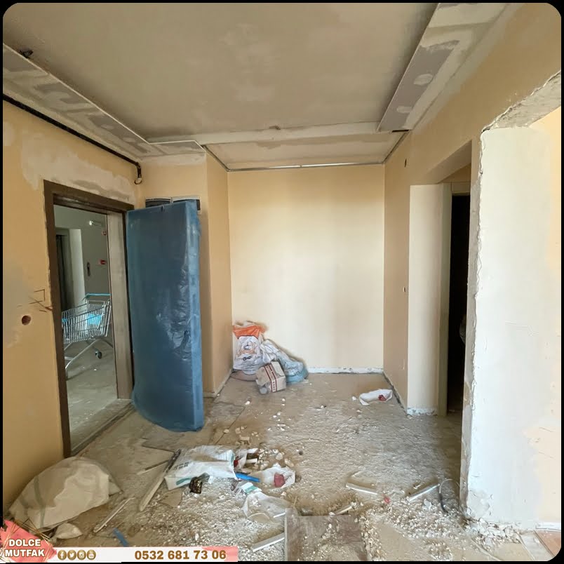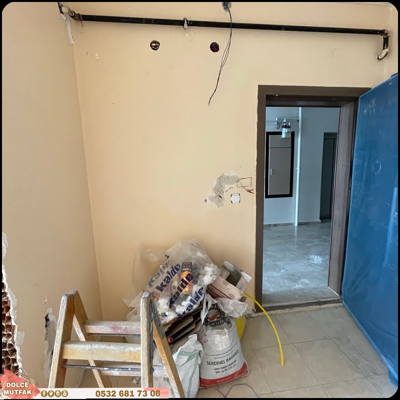 - Mutfak zemin, duvar, tavan ve dolapları